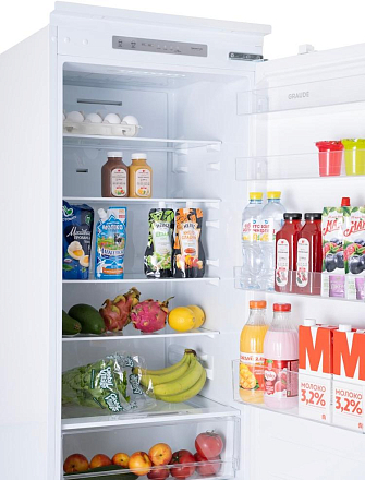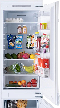 Современный холодильник с системой No Frost (общий объем 267 л). Энергопотребление класса A++. Удобное электронное управление с дисплеем. Вместительная система хранения с 4 стеклянными полками и 2 ящиками для овощей. Сигнализация открытой двери. Оптимальное решение для семьи - 195 л холодильное + 72 л морозильное отделение.