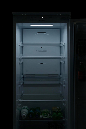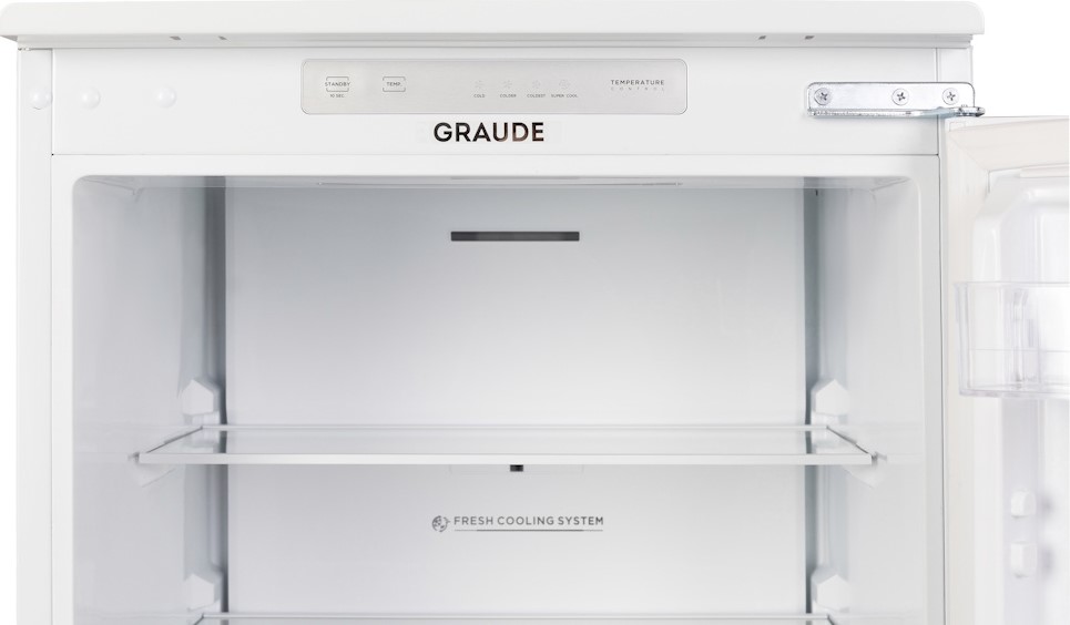 Премиальный холодильный шкаф (178 л) с сенсорным управлением. Статическая система охлаждения, зона свежести. 5 стеклянных полок + 2 ящика для овощей. Энергопотребление A++. Возможность перенавешивания двери.