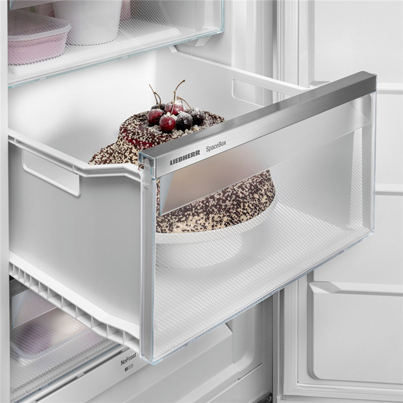 Ваш холодильник должен быть мощным и удобным и в то же время экологичным? Тогда Liebherr создан для вас. Наша технология BluPerformance делает его универсальным: он обеспечивает дополнительный объём и хладопроизводительность, но потребляет при этом очень мало энергии. И прислушайтесь: вы почти ничего не слышите. Потому что ваш Liebherr работает очень тихо, несмотря на свою высокую производительность. Что бы вы хотели слышать в своей кухне? Звук от жарки, смех, музыку? Одно точно нет: ваш холодильник. Он такой спокойный, что его почти не слышно. Его секрет в его современном внутреннем мире. Все компоненты согласованы друг с другом технически и механически. Звучит хорошо, правда? В вашем Liebherr вы разместите даже очень крупные продукты: потому что индейке размера XL или многоярусному торту- мороженому нужно просто больше места. Для таких случаев в вашем Liebherr есть SpaceBox: благодаря большой высоте в 250 мм он предлагает много дополнительного места даже для замороженных продуктов большого размера. И это поможет вам в гибком хранении запасов.