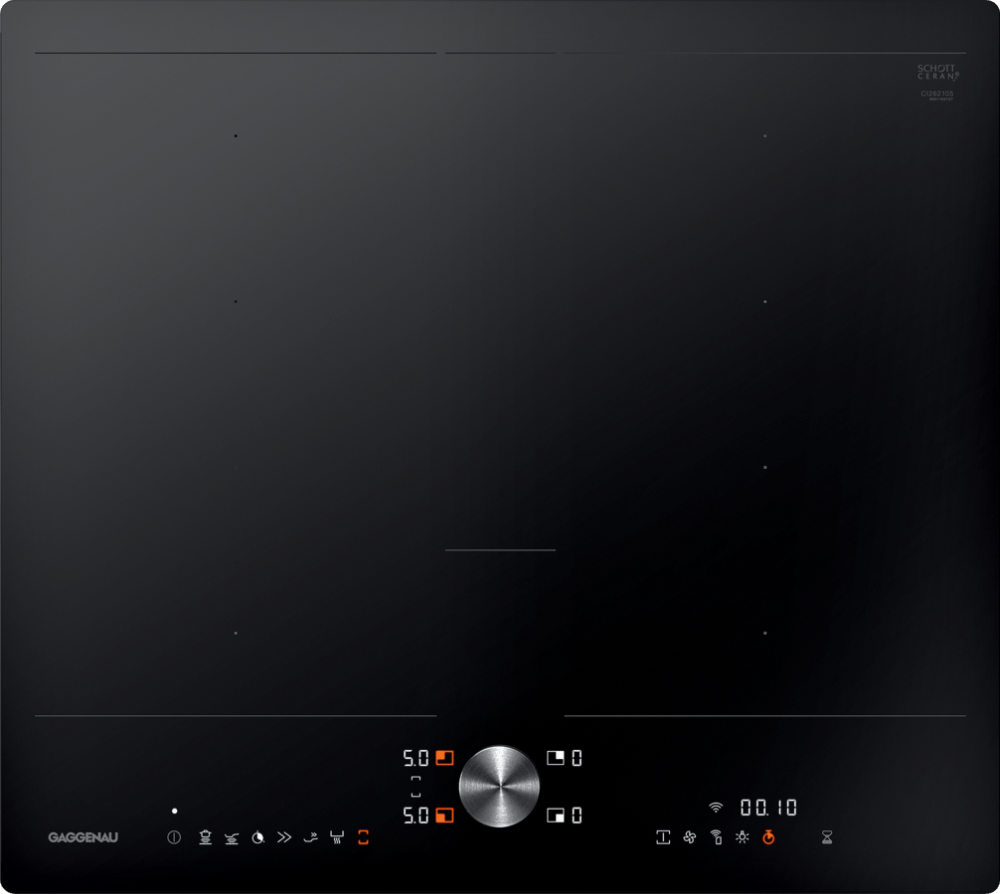 Индукционная варочная поверхность Gaggenau CI262 - это незаменимый прибор на любой кухне! Эта модель имеет 4 конфорки общей номинальной мощностью 7400 Вт. При этом 2 пары конфорок могут быть объединены в большую зону. В целях безопасности варочная панель имеет защиту от детей, автоотключение при перегреве, защиту при выкипании и индикаторы остаточного тепла.  При желании этот прибор можно установить заподлицо вровень со столешницей.