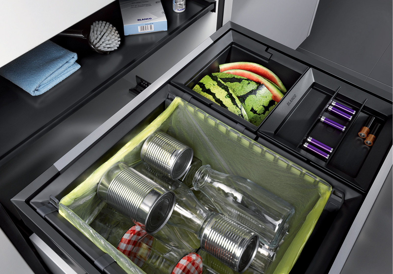 Система сортировки отходов FLEXON II XL 60/3 от Blanco воплощает философию бескомпромиссного качества, инновационного дизайна и функциональности, превращая самое активное место на кухне в продуманный, эргономичный и эстетичный центр для приготовления пищи.
