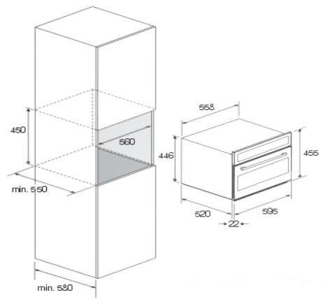 Размеры ниши для встраивания (В х Ш х Г), см