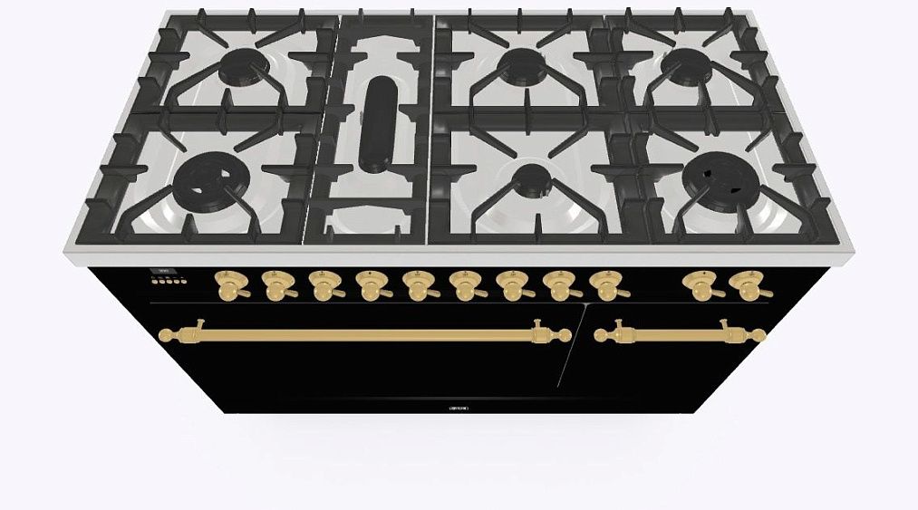 • Тип конфорок: 7 газовых, горелка для рыбной кастрюли, двухконторная конфорка DUAL