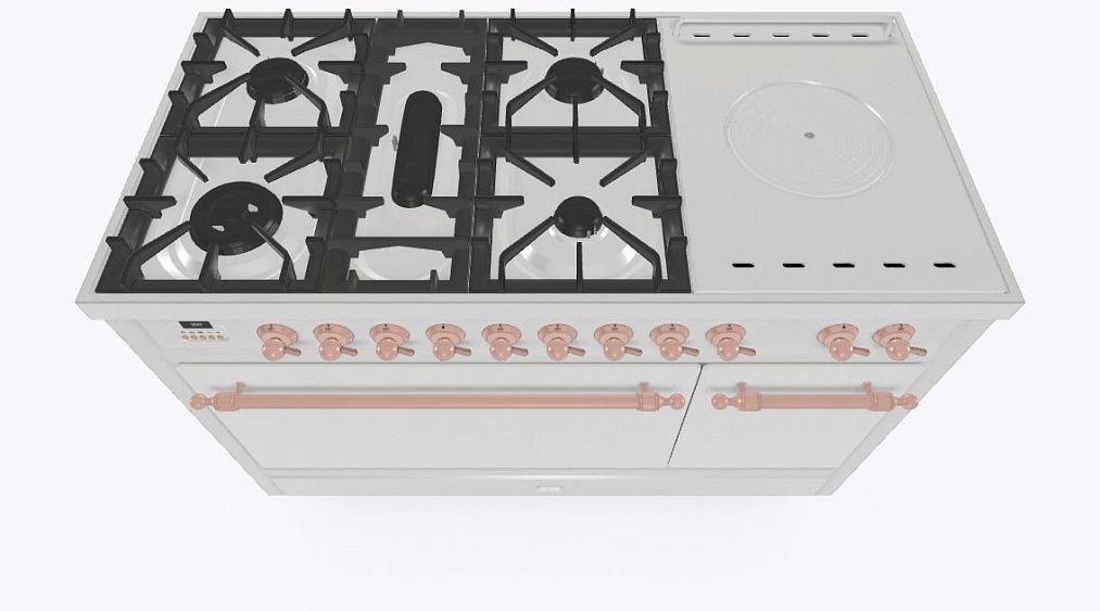 - Тип конфорок: 5 газовых, чугунная тарелка «Coupe de Feu» с кольцами