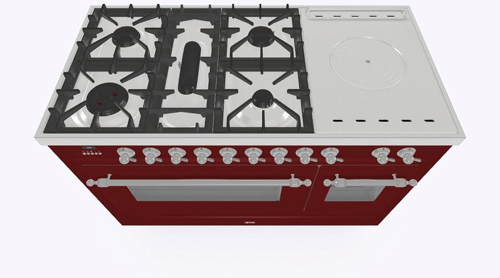 - Тип конфорок: 5 газовых, чугунная тарелка «Coupe de Feu» с кольцами