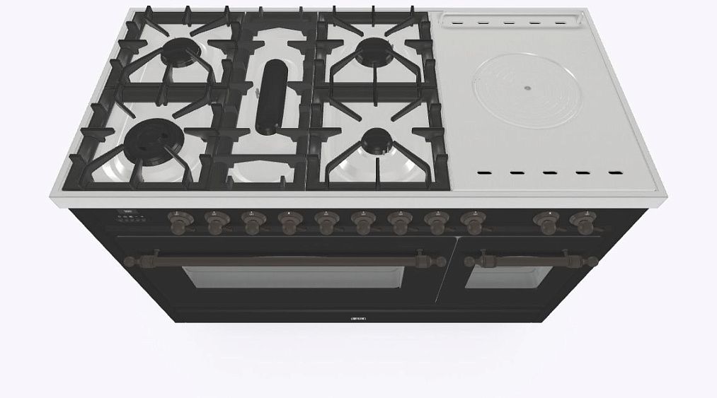 • Тип конфорок: 5 газовых, чугунная тарелка «Coupe de Feu» с кольцами