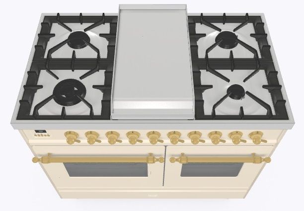 • Тип конфорок: 4 газовые конфорки, Dual конфорка, жарочная поверхность Fry Top