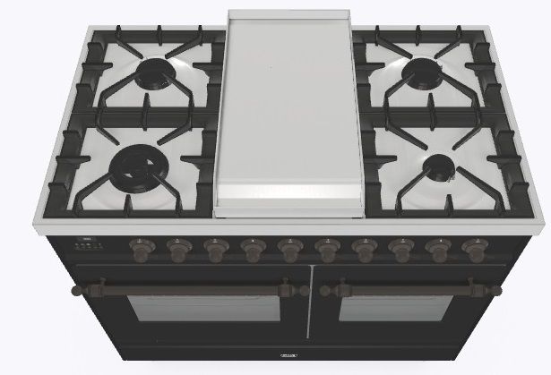 • Тип конфорок: 4 газовые конфорки, Dual конфорка, жарочная поверхность Fry Top