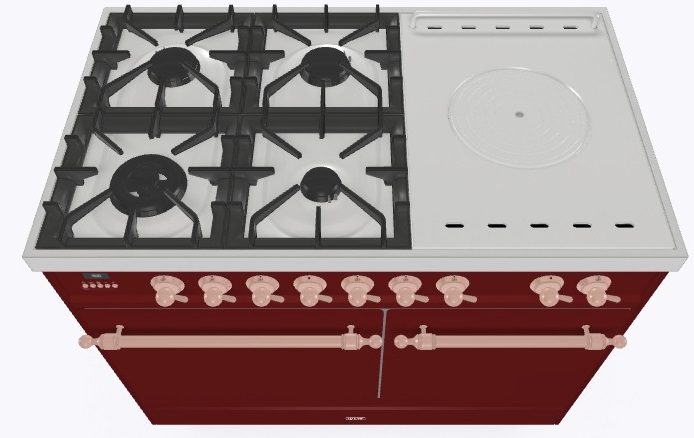 • Тип конфорок: 4 газовые конфорки, WOK конфорка, жарочная поверхность Coup de Feu