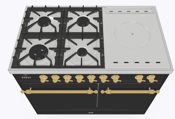 • Тип конфорок: 4 газовые конфорки, WOK конфорка, жарочная поверхность Coup de Feu