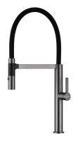 Излив смесителя выполнен из высокопрочного силикона. Конструкцией предусмотрен магнитный механизм фиксации излива.